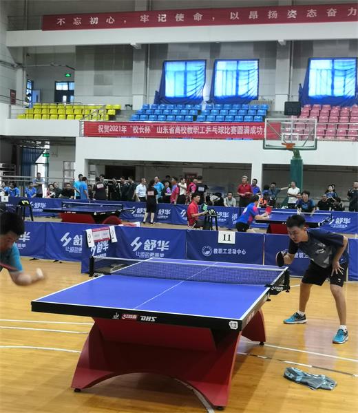 7月5日—7月9日,由山东省教育工会主办、烟台大学承办的2021年“喜迎建党百周年,奋力建功新时代”山东省“校长杯”全省高校教职工乒乓球比赛在烟台大学举行。来自全省59所高校的60支队伍共500余人参加了本届比赛。