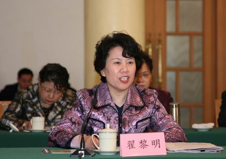省妇联主席翟黎明汇报山东妇女工作情况。