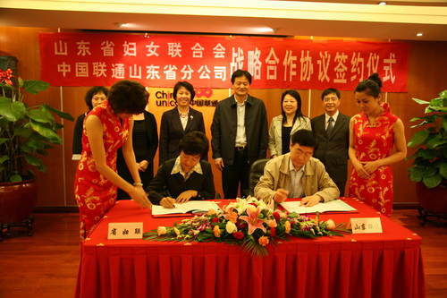 省妇联主席翟黎明、联通山东分公司总经理霍海峰出席签约仪式。