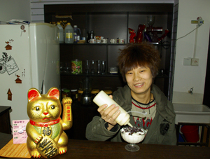 在奶茶店里,无处不散发着这种温馨而舒缓的气息。为了进一步吸引同学们,在奶茶业的竞争中不被淘汰,她不时地创新自己的产品,几乎每一周她的小店都有新的饮品诞生。而这每一种新添的饮品都经过了她好几十遍的调试,从原料到味道,再到颜色,她几乎工作到忘我。这样的投入,让她不断在创新中超越自己。每当这时候,她就会拿着她的得意之作,请大家免费品尝,并让大家指出她还需要改进的地方。不断的创新,让她的小店别具一格,保持着自己的特色。